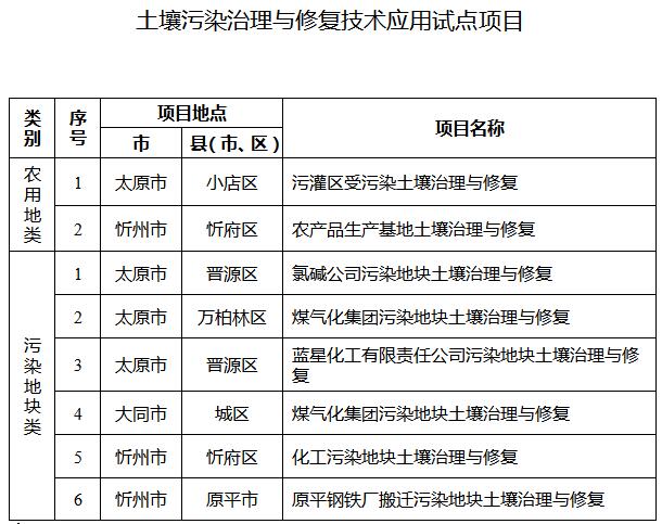 20.推进土壤污染治理与修复项目库建设,强化土壤污染防治项目储备。进一步抓好土壤污染治理与修复技术应用试点工作,2017年重点实施2个农用地类和6个污染地块类土壤污染治理与修复技术应用试点项目(见附件),按照国家规定时限要求完成。以城市周边污灌区、受污染耕地集中区域为重点,各市要启动一批受污染耕地治理与修复项目,全省共启动3000亩受污染耕地治理与修复。(省环保厅、省农业厅、省国土资源厅牵头,各市人民政府负责落实)
