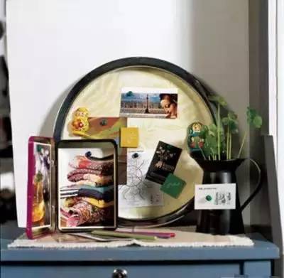 出去旅游的门票、某个城市的地铁图,留下来时常看看都能勾起一片美好的回忆。冰箱上已经贴满了,别急,你自己也可以制作,不喜欢的托盘、装糖果的铁盒都能用。托盘里可以装饰上零碎的壁纸,避免太单调,摆在书桌一角非常有趣。