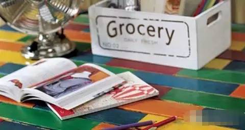实木桌子,有时是因为外表不时髦而被淘汰,其实结构还是保持完好的。你可以购买价格便宜的木地板,或者使用装修时剩下的材料,试着把它们贴在桌子表面。可以直接用胶粘,中间留些缝隙也没关系,因为木板条可能会根据气候热胀冷缩。最后刷漆上五颜六色的木器漆,就完成了一件非常有创意的作品。