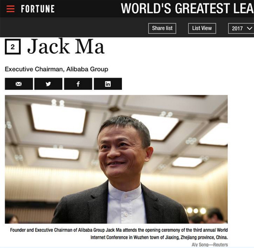 图1:马云入选《财富》杂志2017年度全球50大领袖人物榜单,来源于网络