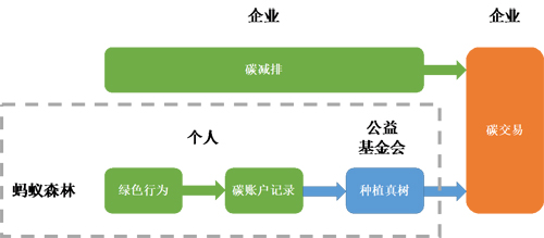 而作为全球规模最大的个人碳市场产品,蚂蚁森林已为支付宝平台的4.5亿用户全面上线“碳账户”,用于度量人们一些日常活动的碳减排量。初期通过公益基金会(阿拉善SEE基金会)购买个人碳账户所积累绿色能量的办法,将其转化为植树行为,未来将参照国际上一直通行的自愿减排(VER)交易机制开展VER减排项目交易,鼓励有社会责任的企业和个人购买。