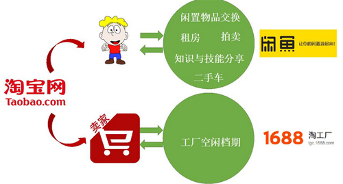 阿里系的闲鱼和淘工厂,通过二手物品交换和分享促进资源更加高效的利用,减少资源的浪费。闲鱼是提供闲置物品交换、租房、拍卖、二手车、知识与技能分享等服务的二手交易平台。在2014年6月成立时便确认了社区化的最基本元素“鱼塘”。用户可以发现和主动搜索到无数基于地理位置、主题的鱼塘。用户加入到鱼塘后在上面发布相关的闲置信息,这大大方便了相近位置的闲置物品交换。如果在淘宝购物之后有转让意向,就可以用“一键转卖”按钮到闲鱼进行交易,非常便捷。现在,咸鱼累计超过1亿实名认证用户,每天有10万件物品成交。