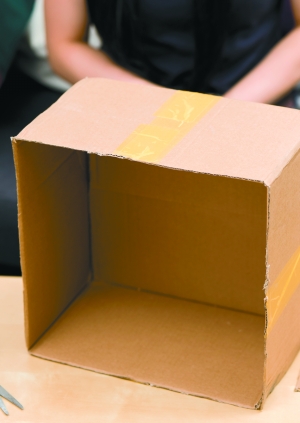 1、剪纸盒:将纸盒的四个边盖剪掉,只剩主体,顶部的边盖用胶纸粘起来。