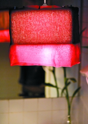 5、灯罩完成:从灯罩下将灯光固定在灯座上,一个漂亮的挂灯就大功告成。喜欢新鲜感的MM,还可以根据不同的心情和需要,随意频繁地更换透明纱的颜色。