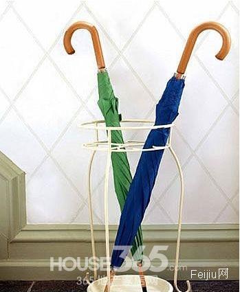 改造方法:雨伞也有固定的收纳器皿了,它不是现成品,而是由盆栽立架和陶瓷托盘两样东西组成。分别用金属专用涂料和瓷器专用涂料统一它们的颜色,直接立在门口,你就再也不用担心滴水趟得到处都是。